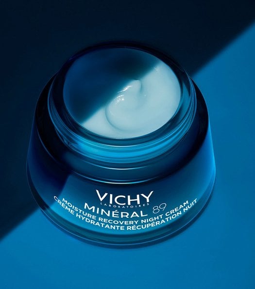 La crema hidratante de noche Minéral 89 está potenciada por un perfume inspirado en la neurociencia que ha sido diseñada para aportar una sensación relajante antes de acostarte.