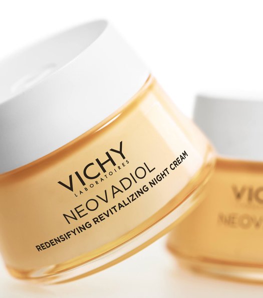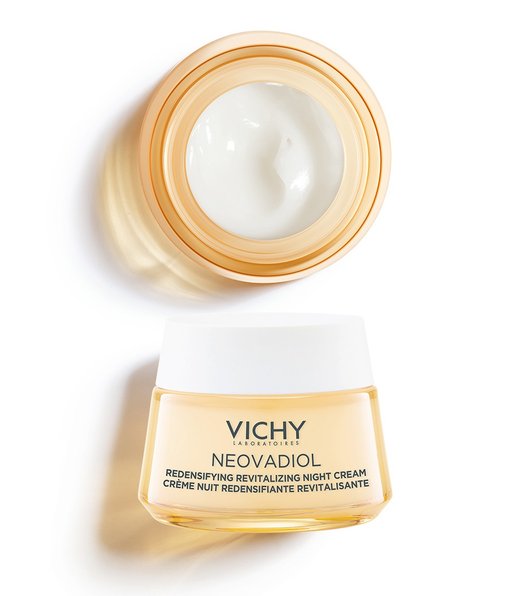 La CREMA DE NOCHE REVITALIZANTE Y REDENSIFICANTE reactiva los mecanismos de la piel durante la perimenopausia: densidad, luminosidad.