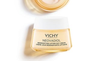 Neovadiol Meno 5 Bi-Serum reactiva visiblemente los mecanismos antiedad de la piel durante la menopausia: manchas de la edad, flacidez, densidad, arrugas, opacidad.