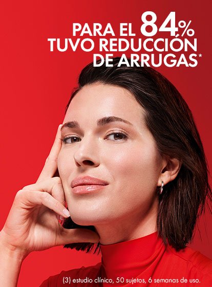 (3)Resultados de autoevaluación, estudio clínico, 52 sujetos, 12 semanas de uso. (4) Simulación digital de resultados sobre líneas y arrugas, basados en estudio clínico con 50 sujetos después de 12 semanas de uso. Los resultados pueden variar de una persona a otra..