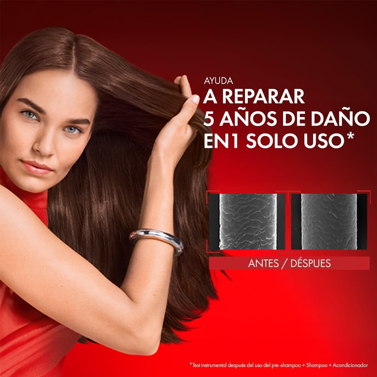 * Prueba instrumental después de 6 aplicaciones del pre-shampoo, shampoo y acondicionador. **Pruebas instrumentales.
