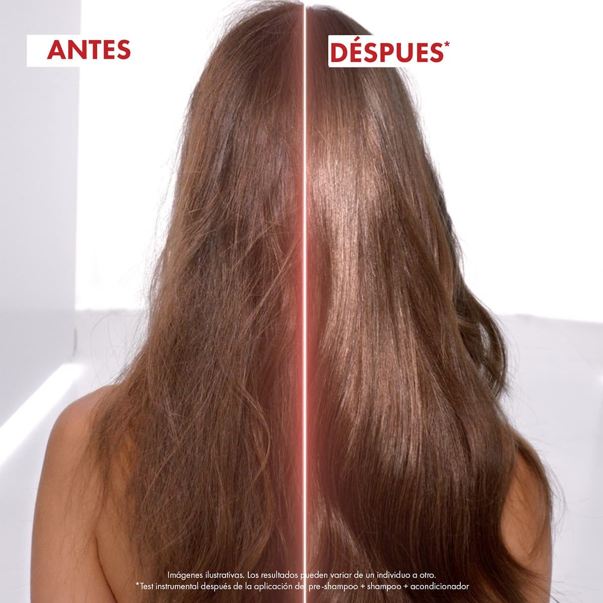 Refuerza la raíz de tu cuero cabelludo con Colágeno 17, reparando la fibra de tu cabello y dandole más volumen. Repara 5 años de daño en un solo uso.